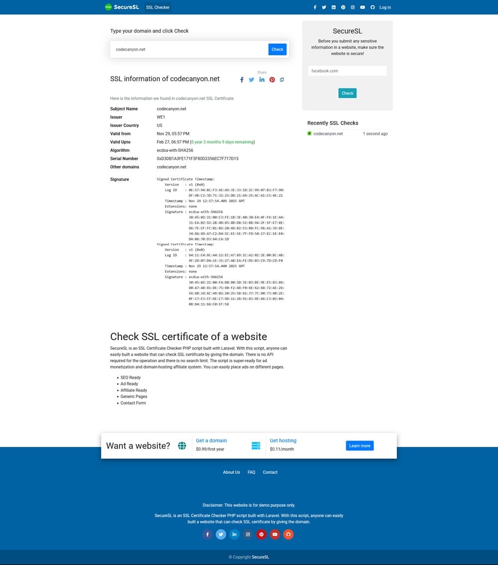 دانلود نسخه SecureSL-Website SSL Certificate Checker Script V 2.0.0