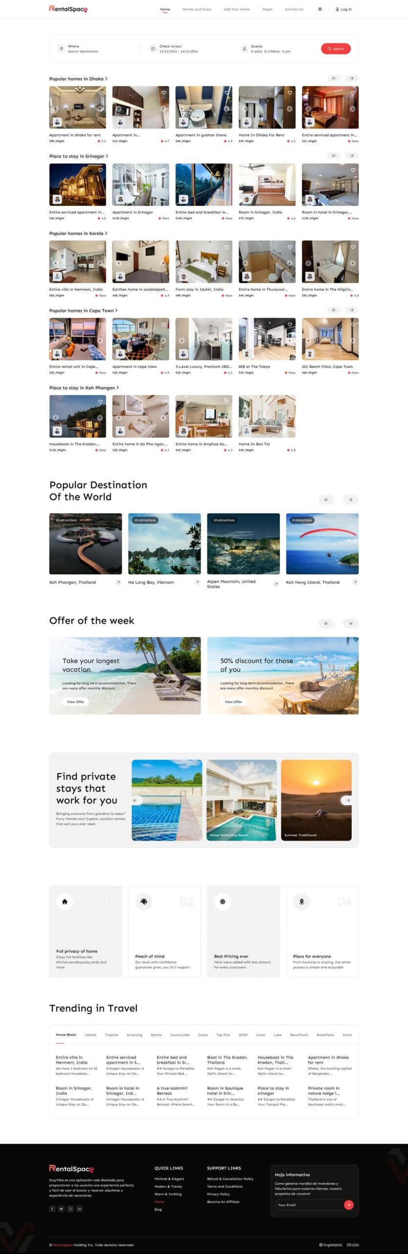 RentalSpace-Vacation Rental Script یک اسکریپت املاک که بسیار پیشرفته و مدرن است. RentalSpace یک سیستم کامل اجاره تعطیلات است که به شما این امکان را می دهد تا به راحتی یک پلتفرم مشابه Airbnb راه اندازی کنید. این سیستم چند فروشنده ای به مالکین املاک اجازه می دهد فضاهای خود را لیست کنند و مهمانان می توانند به سرعت و به طور مستقیم رزرو کنند.