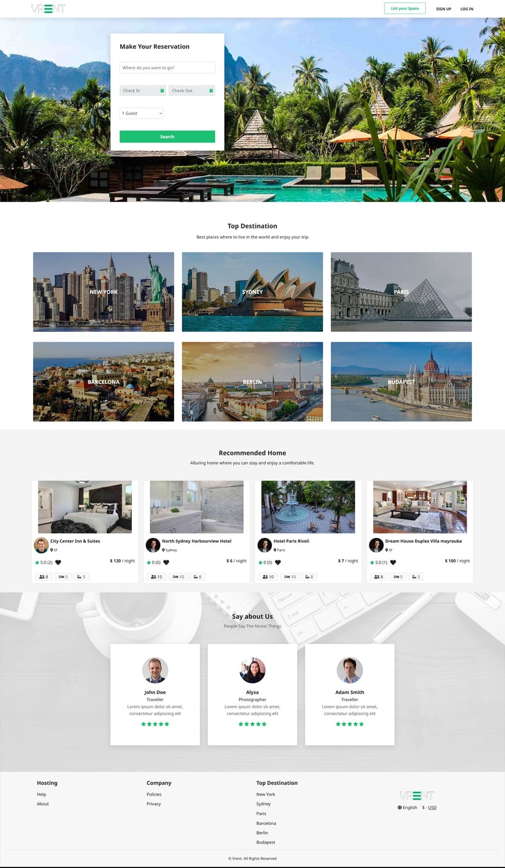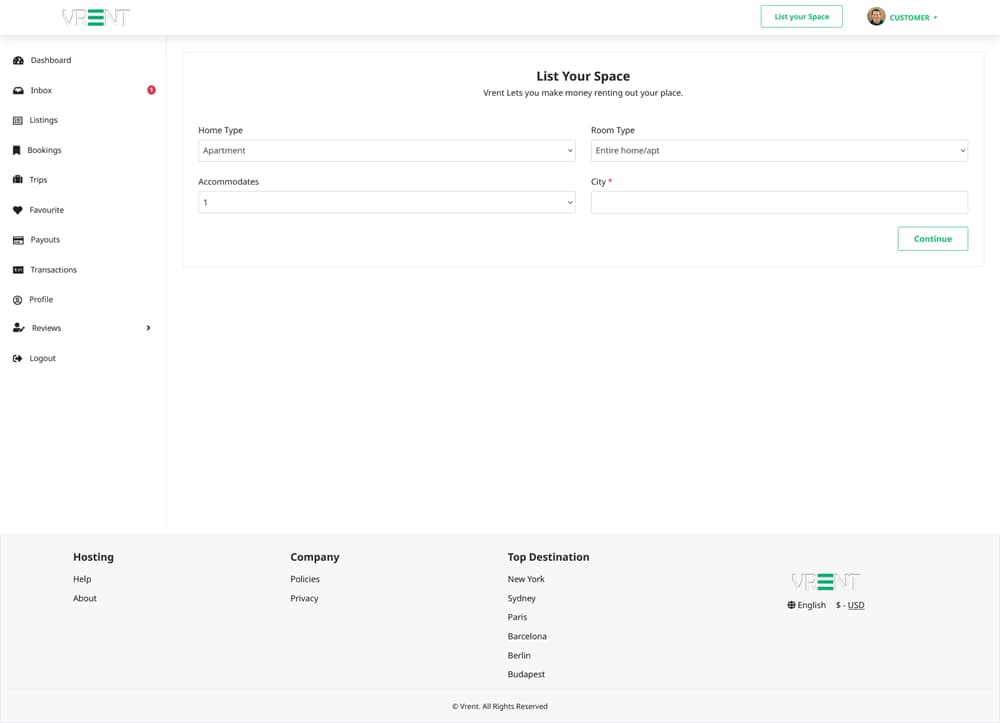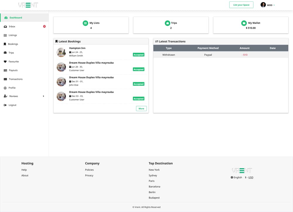 vRent-Vacation Rental Marketplace یک اسکریپت املاک که بسیار پیشرفته و مدرن است. vRent یک وبسایت کامل برای رزرو تعطیلات است که به طور خاص برای اجاره های تعطیلات در سطح جهانی طراحی کردند. این اسکریپت به مالکان کمک می کند تا با لیست کردن ملک های خود در سرتاسر جهان درآمدزایی کنند.