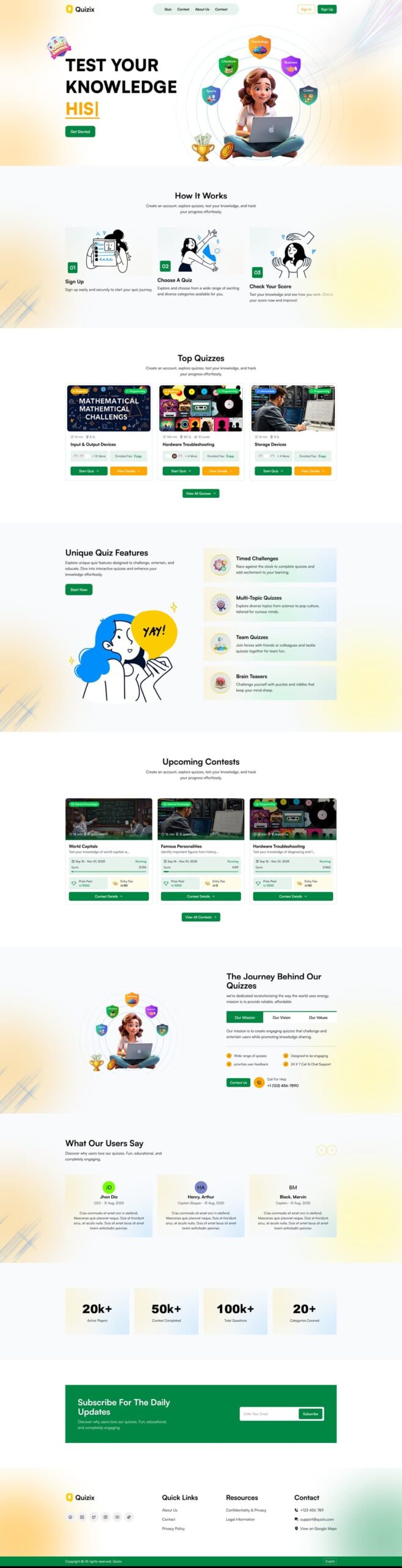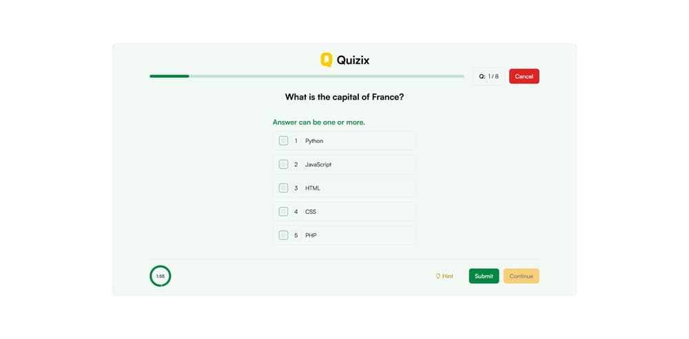 QuiziX-AI Quiz-Trivia Game-Laravel -Next.js یک اسکریپت بازی که بسیار پیشرفته و مدرن است. Quizix یک پلتفرم پیشرفته برای ایجاد و مدیریت آزمون های آنلاین است که با استفاده از Laravel و Next.js طراحی کردند. این ابزار به کاربران این امکان را می دهد که آزمون های تعاملی و جذابی ایجاد کنند و به صورت آنلاین به رقابت با دیگران بپردازند.