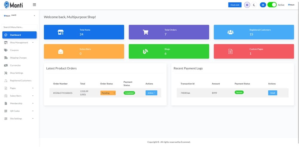 این نرم افزار شامل تم های جذاب متنوع و امکاناتی چون مدیریت موجودی و درگاه های پرداخت است. مدیران می توانند پلن های اشتراکی با ویژگی‌های متنوع ایجاد کنند و کاربران به راحتی قادرند محصولات فیزیکی و دیجیتال را مدیریت کنند. Ecommet یک راه حل جامع و کاربرپسند برای ایجاد وبسایت های تجارت الکترونیک است.