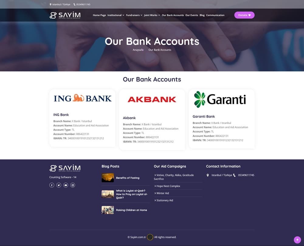 Dernek ve Bagıs Yazılımı یک اسکریپت تامین مالی که بسیار شیک و پیشرفته است. Dernek ve Bagıs یک نرم افزار تامین مالی است که به سازمان ها و بنیادها کمک می کند تا فرآیند جمع آوری کمک و تامین مالی را به طور موثر مدیریت کنند. این نرم افزار با امکانات جامع خود، به بهبود شفافیت و مدیریت مالی در این حوزه کمک می کند.