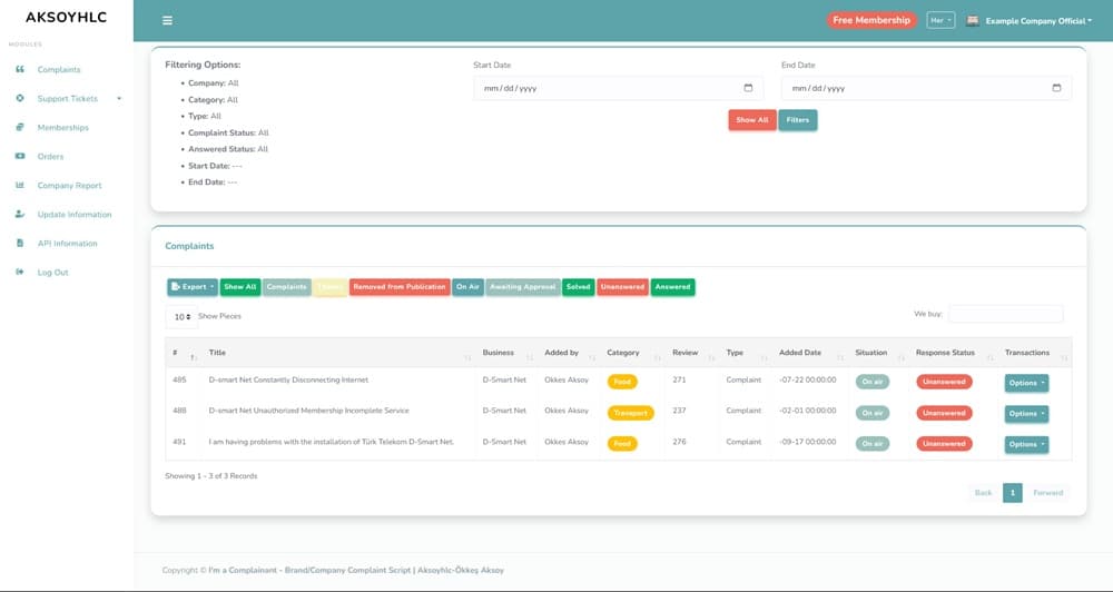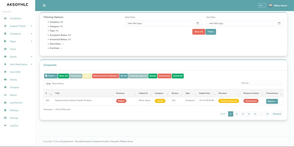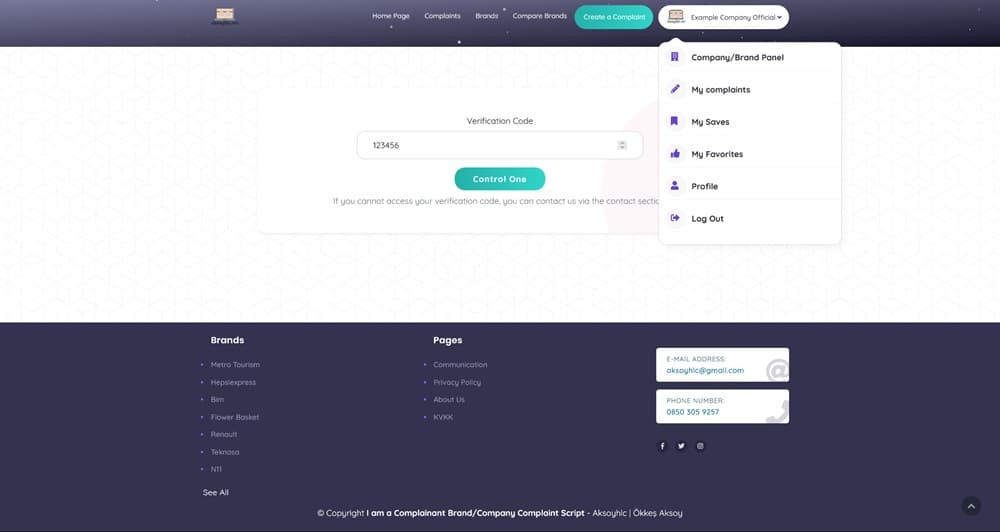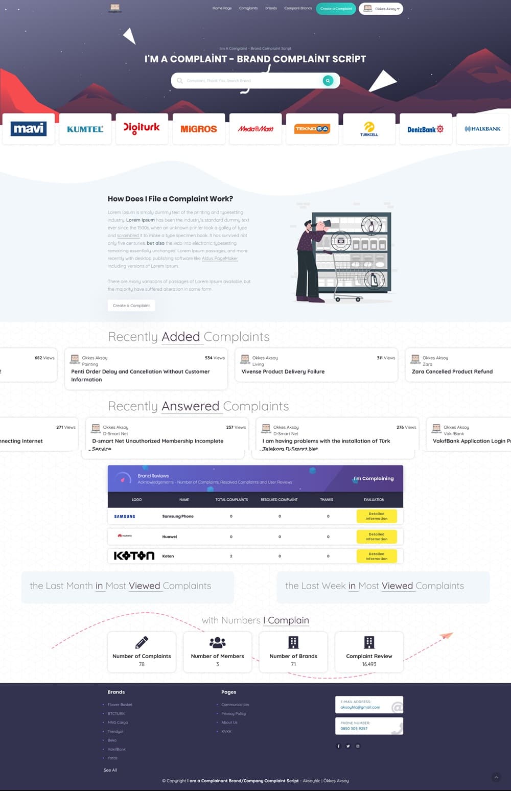 Sikayetciyim Marka-Firma Sikayet Scripti یک اسکریپت حقوقی که بسیار پیشرفته و مدرن است. Sikayetciyim ابزاری برای مدیریت شکایات کاربران از برندها و شرکت هاست که قابلیت ثبت و پیگیری شکایات را به صورتی موثر فراهم می کند.
