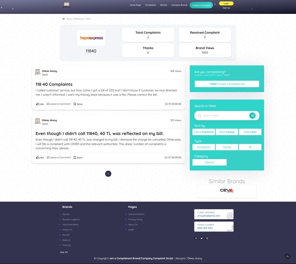 دانلود اسکریپت حقوقی Sikayetciyim Marka-Firma Sikayet Scripti