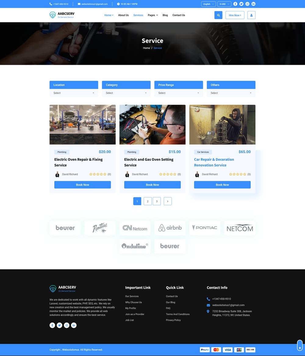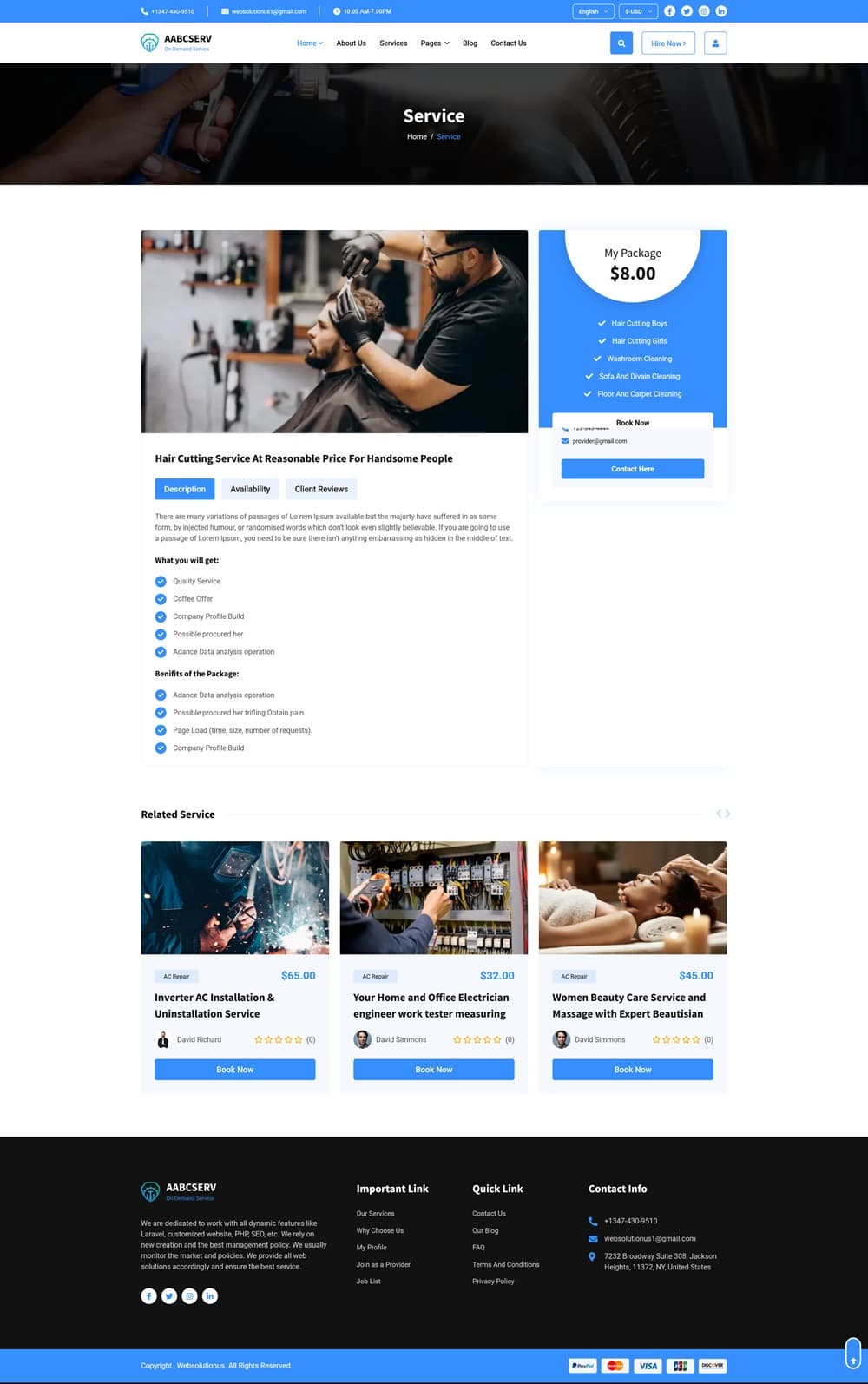 Aabcserv-Multivendor On-Demand Service یک اسکریپت خدمات که بسیار پیشرفته و مدرن است. AABCServ یک اسکریپت با قابلیت چند فروشندگی برای خدمات آنلاین است که امکان ارائه خدمات مختلف مانند: خدمات خانگی و تعمیرات را فراهم می کند. این پلتفرم به کاربران این امکان را می دهد که به سادگی فروشندگان خدمات را پیدا کرده و با آن ها ارتباط برقرار کنند.