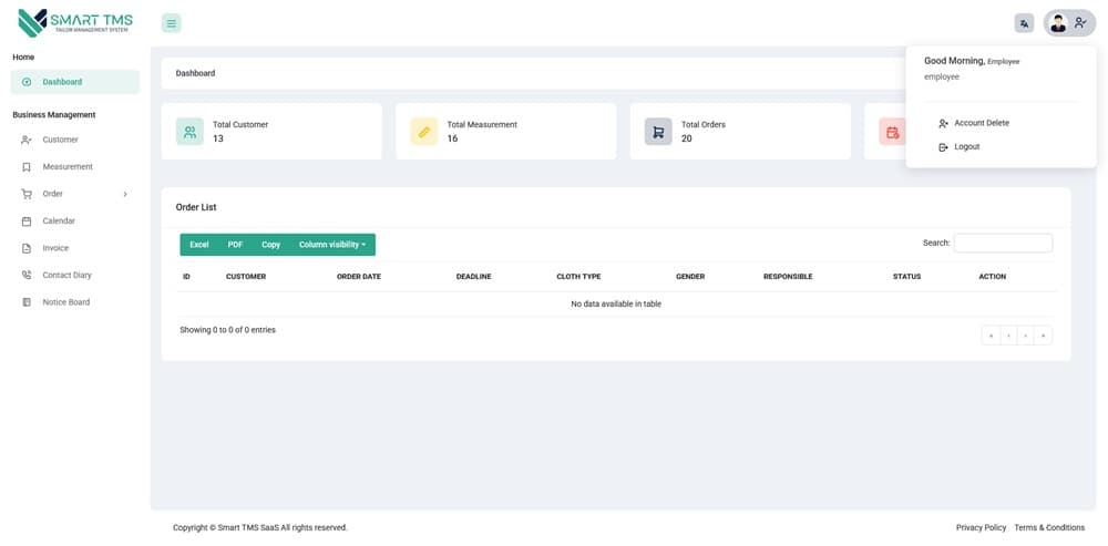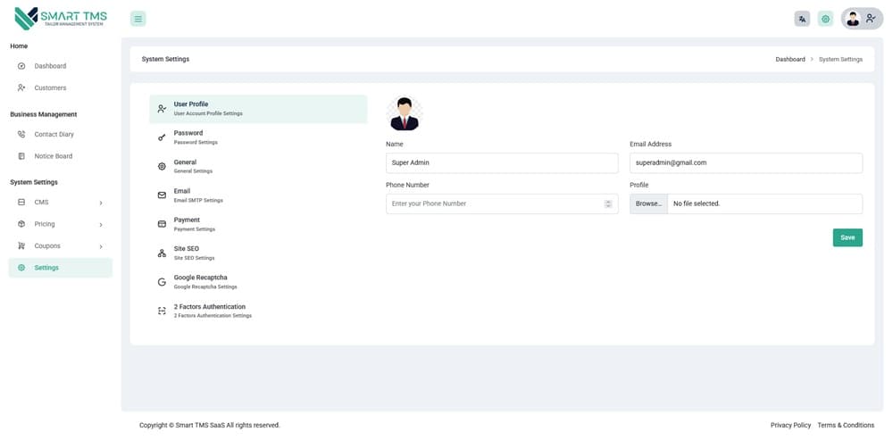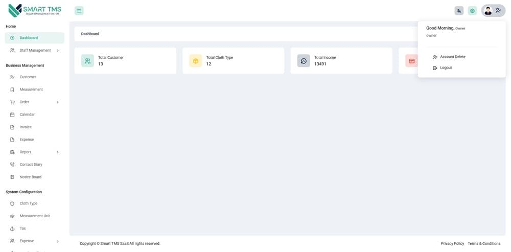 Smart TMS SaaS – Tailor Management System