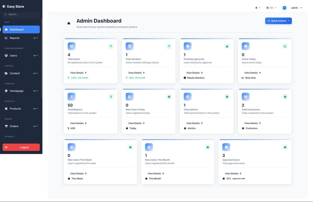 Easy Ecommerce-Ai Powered Multi-Vendor یک اسکریپت فروشگاهی که بسیار پیشرفته و حرفه ای است. Easy Ecommerce یک پلتفرم پیشرفته با قابلیت چند فروشندگی است که به طور خاص برای بازارهای آنلاین مدرن طراحی کردند. این سیستم از فریم ورک Laravel و هوش مصنوعی بهره می برد تا تجربه خریدی بی نظیر را ارائه دهد.