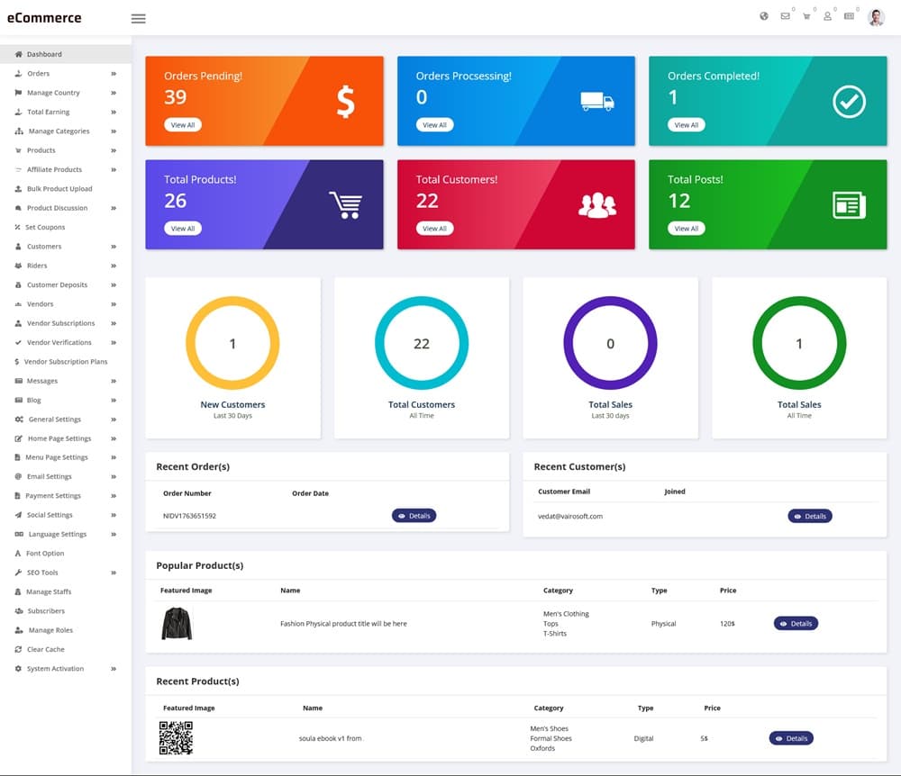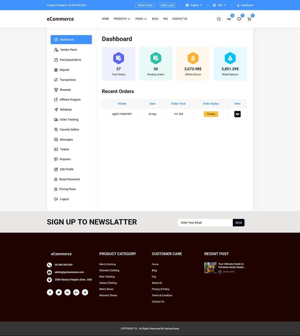 GeniusCart-Fashion-Clothing eCommerce یک اسکریپت فروشگاهی که بسیار پیشرفته و حرفه ای است. این اسکریپت فروشگاه آنلاین امکان ایجاد فروشگاه های تک فروشنده و چندفروشنده را فراهم می کند که می تواند انواع محصولات، از جمله محصولات فیزیکی و دیجیتال، را به فروش برساند.