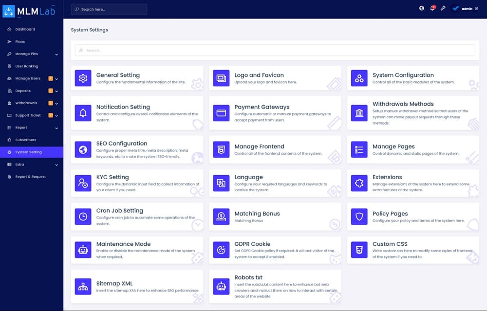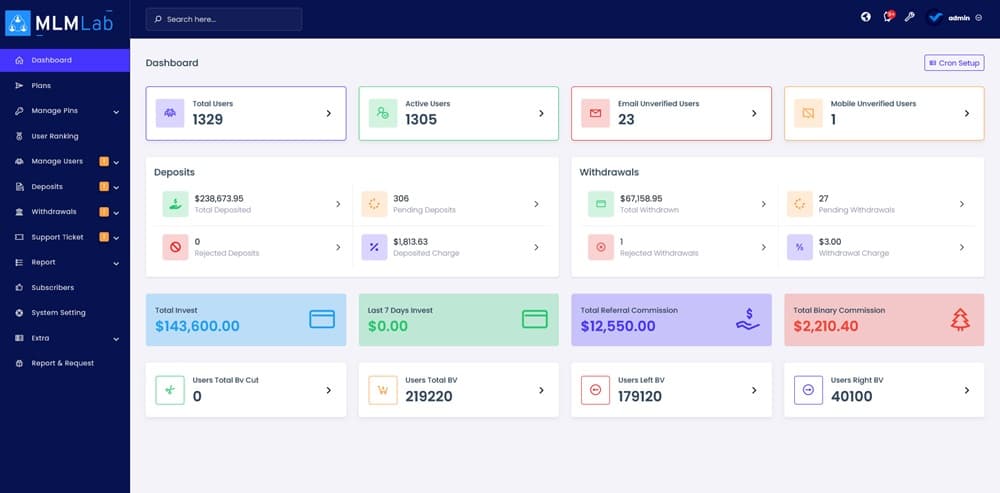 MLMLab-Multilevel Marketing Platform یک اسکریپت مارکتینگ که بسیار پیشرفته و مدرن است. MLMLab یک پلتفرم چندسطحی بازاریابی است که به کسب و کارها کمک می کند تا شبکه های بازاریابی قدرتمندی بسازند. این اسکریپت دارای قابلیت هایی مانند: مدیریت اعضا، ایجاد کمپین های بازاریابی و گزارش دهی پیشرفته است.