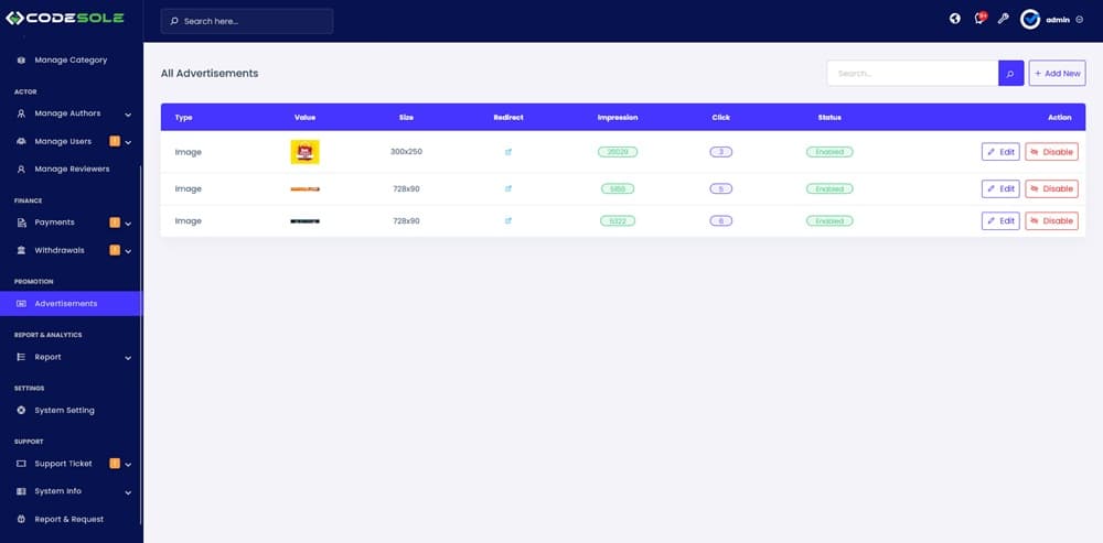- مدیریت تبلیغات