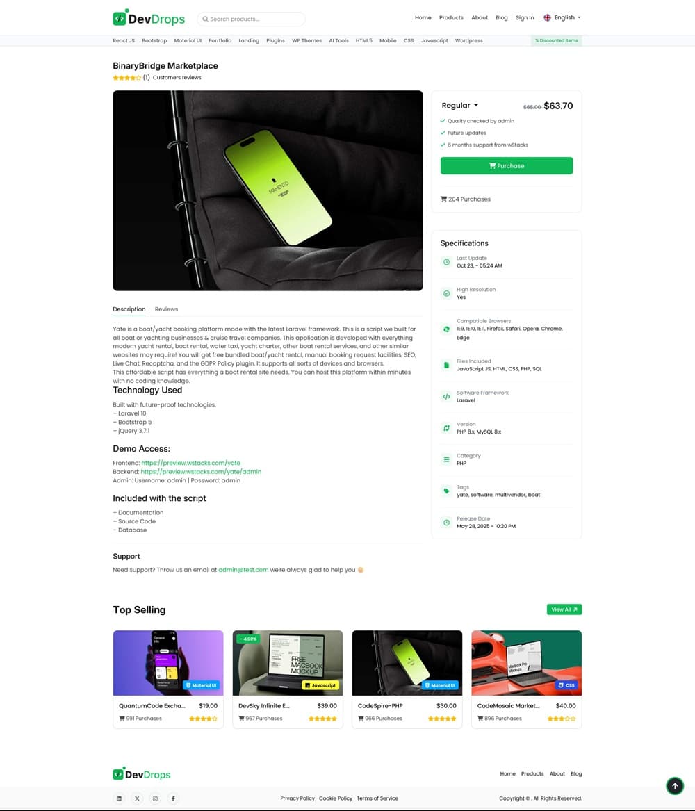 دانلود نسخه DevDrops-Marketplace for Scripts-Code-Tools V 1.1.0