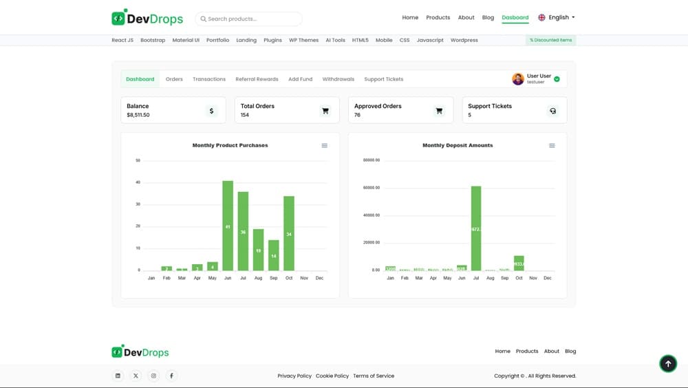 DevDrops-Marketplace for Scripts-Code-Tools یک اسکریپت مارکت پلیس که بسیار پیشرفته و حرفه ای است. DevDrops یک بازار مدرن برای توسعه دهندگان است که به آن ها این امکان را می دهد تا اسکریپت ها، ابزارها و محصولات دیجیتال موجود را خرید و فروش کنند. این پلتفرم از تراکنش های امن و تحویل فوری فایل ها پشتیبانی می کند.