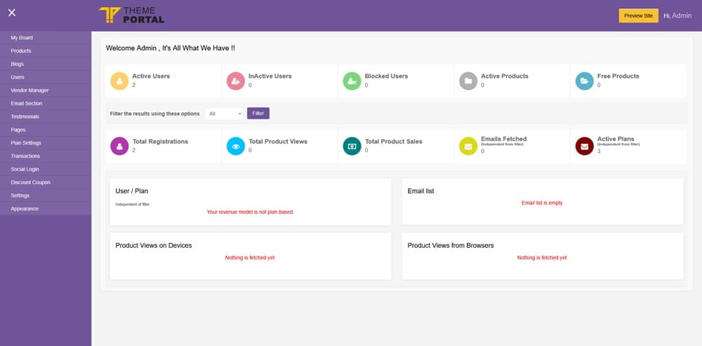 Theme Portal Marketplace-digital products یک اسکریپت مارکت پلیس که بسیار پیشرفته و حرفه ای است. Theme Portal Marketplace یک پلتفرم با قابلیت چندفروشندگی است که به کاربران این امکان را می دهد تا محصولات دیجیتال مانند قالب ها، پلاگین ها و اسکریپت ها را به فروش برسانند.