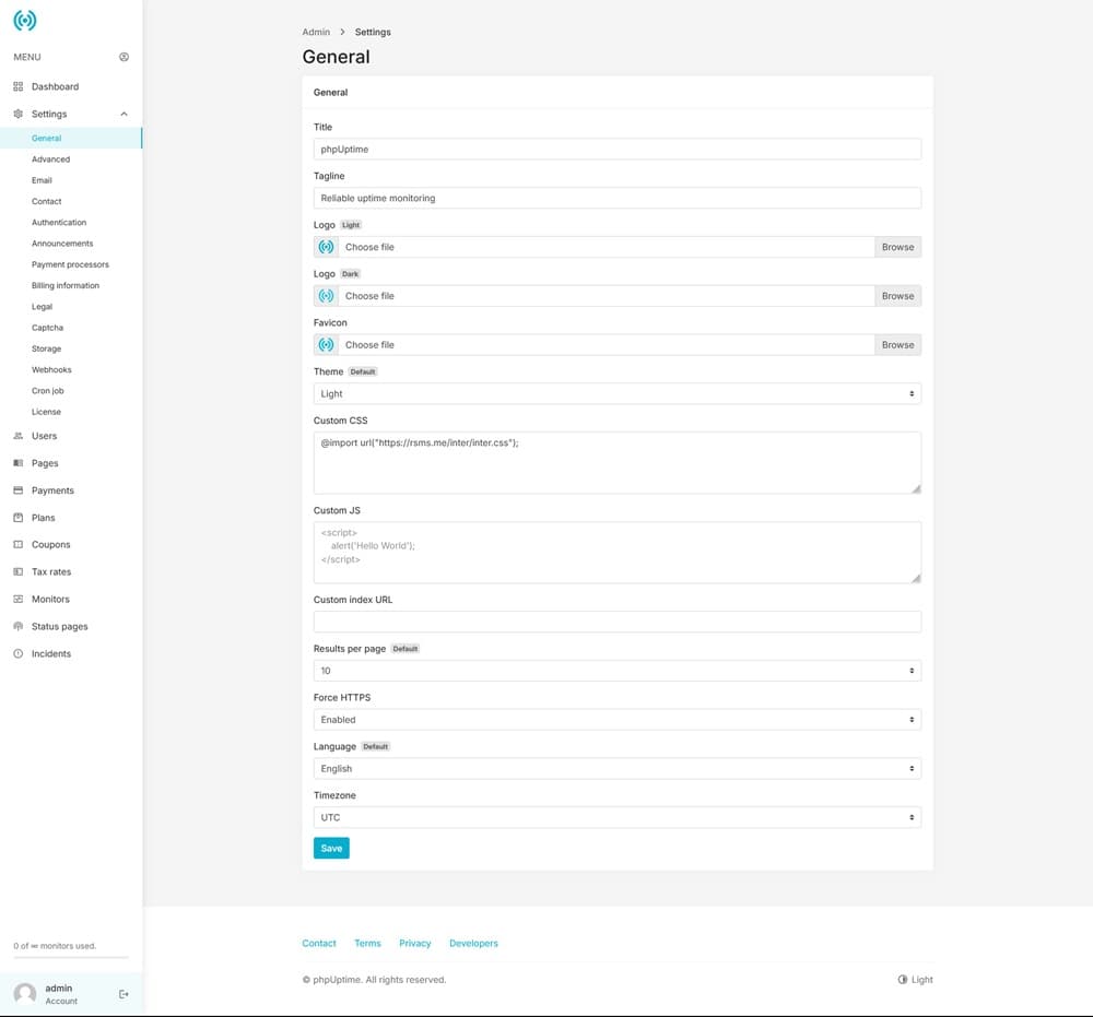 phpUptime-Website Uptime Monitor-SaaS یک اسکریپت مانیتورینگ که بسیار پیشرفته و حرفه ای است. PHP Uptime یک اسکریپت حرفه ای برای نظارت بر زمان فعالیت وبسایت ها است. این اسکریپت به کاربران این اجازه را می دهد که وضعیت عملکرد وبسایت های مختلف را به صورت لحظه ای بررسی کنند.