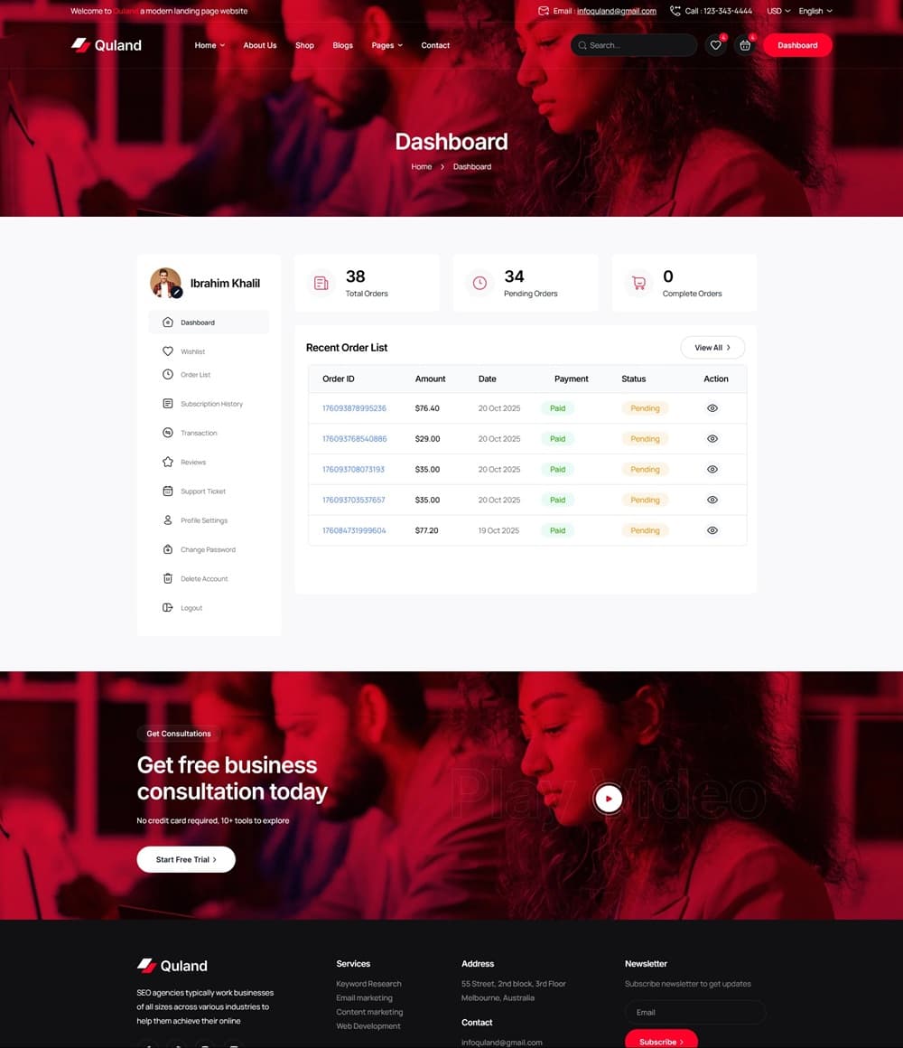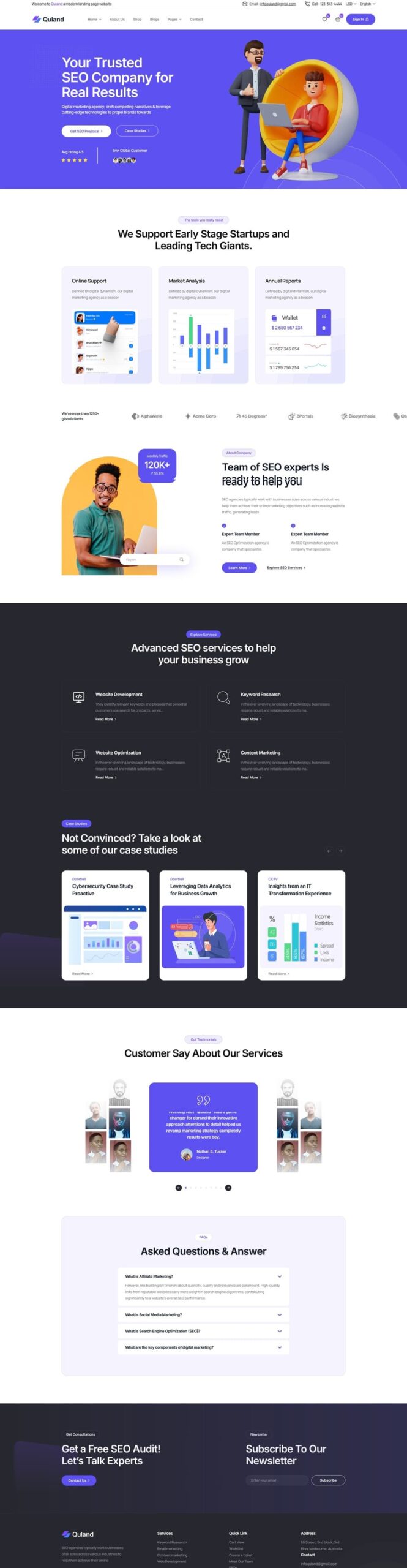با تمرکز بر روی سادگی استفاده و عملکرد قوی، Quland به کسب و کارها این امکان را می دهد که حضور آنلاین خود را به طور موثری ارتقا دهند. این الگو کاملا مناسب برای وبسایت های شرکتی، آژانس های دیجیتال و پورتفولیوی حرفه ای است. این اسکریپت متفرقه و خدماتی دارای امکانات و ویژگی های زیادی است.
