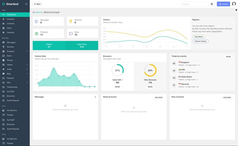 دانلود اسکریپت محتوا SmartEnd CMS-Laravel Admin Dashboard