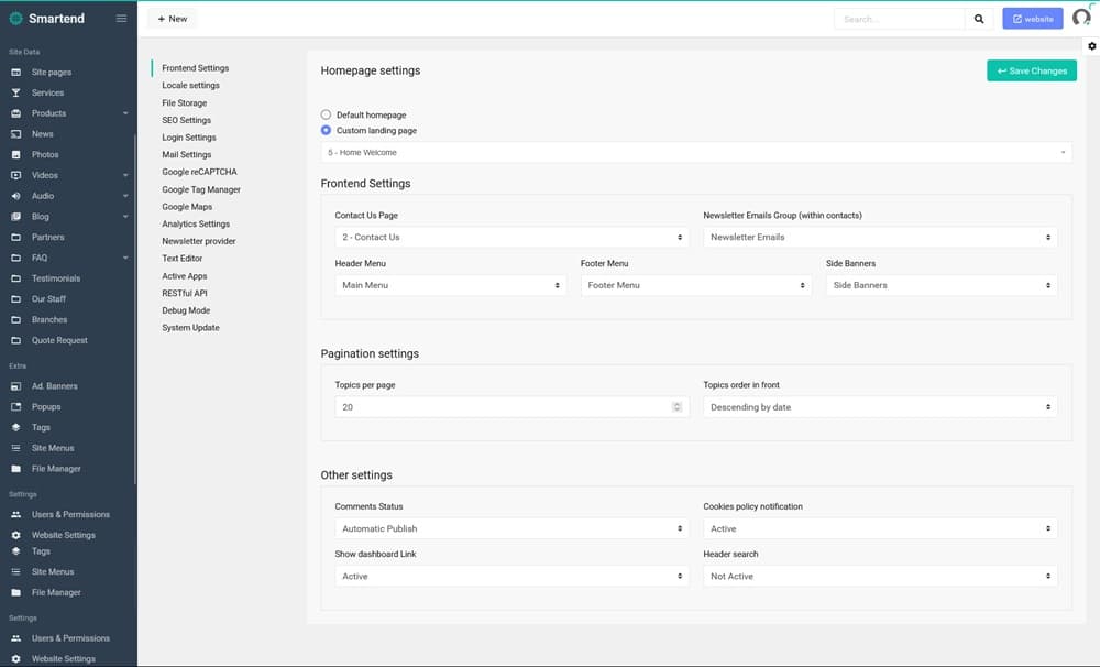SmartEnd CMS – Laravel Admin Dashboard with Frontend and Restful API