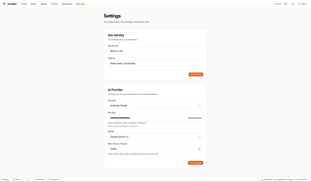 VoxelSite — AI Website Generator · Self-Hosted · Own Your Files
