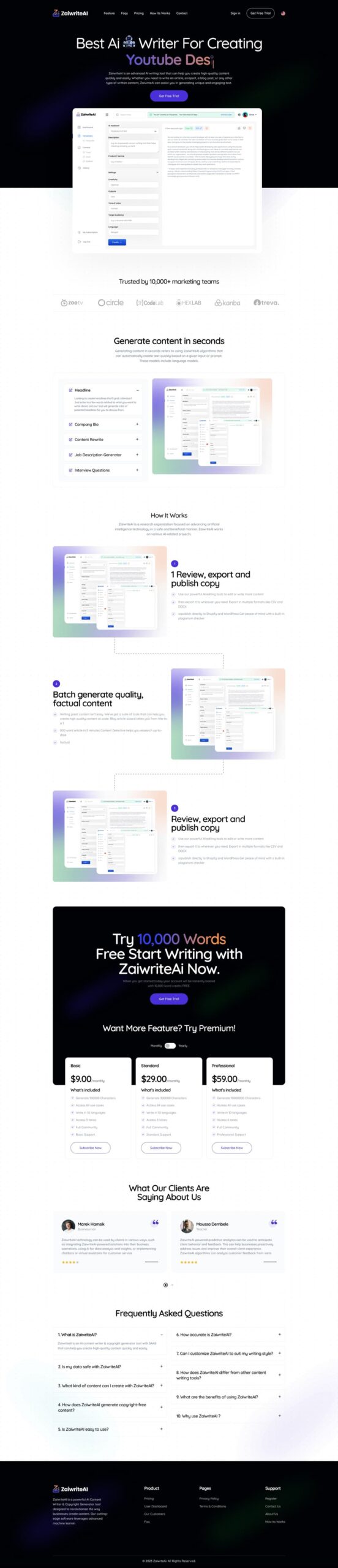 ZaiwriteAI – Ai Content Writer & Copyright Generator tool With SAAS