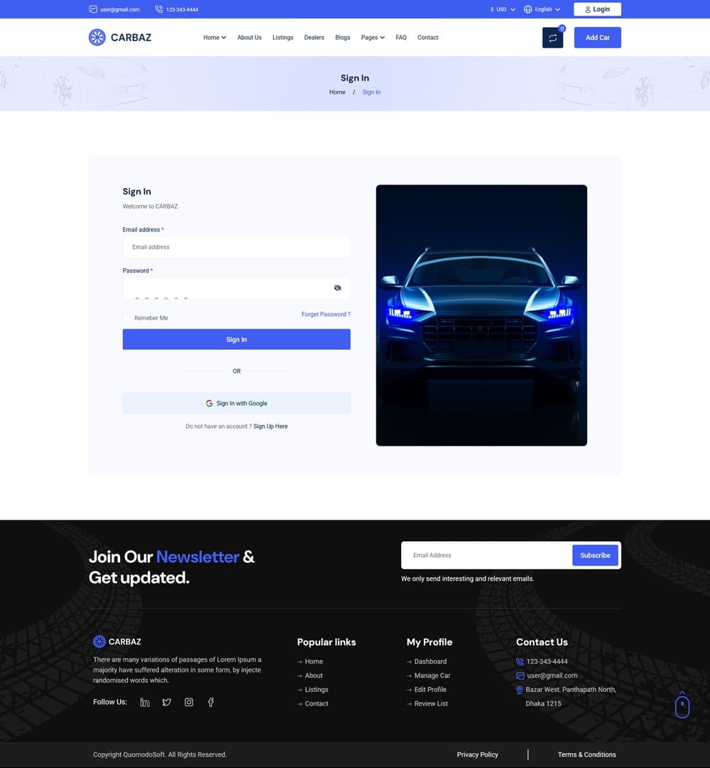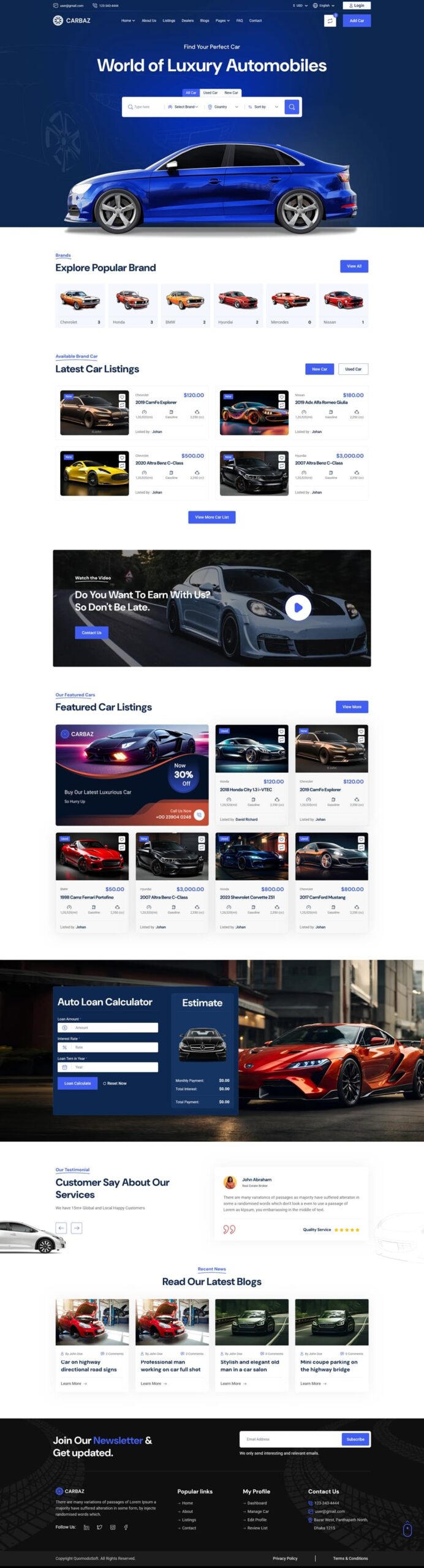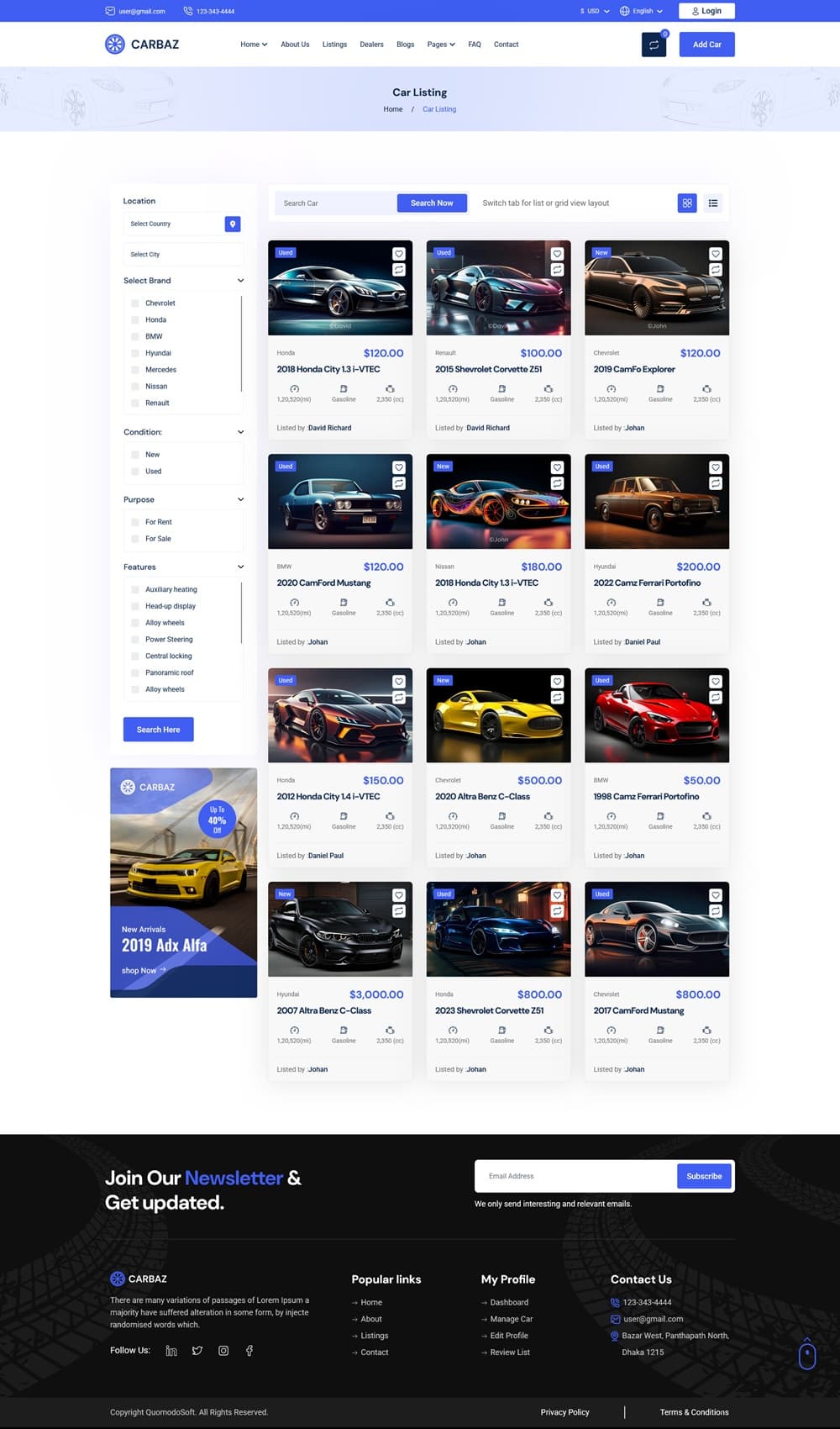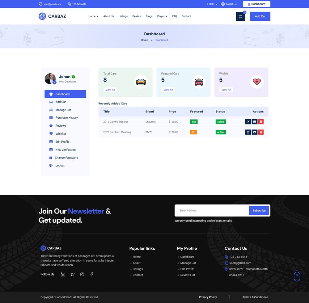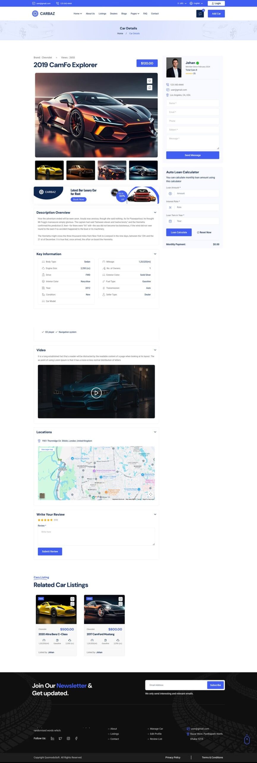 Carbaz-Car listing-Car Rental Directory Laravel یک اسکریپت وسایل نقلیه که بسیار پیشرفته و حرفه ای است. Carbaz یک پلتفرم نوآورانه برای ثبت آگهی و اجاره خودرو است که به طور خاص برای علاقه مندان به خودروسازی طراحی کردند. این سیستم به کاربران این امکان را می دهد که به سادگی خودروهای مورد نظر خود را خریداری یا اجاره کنند.