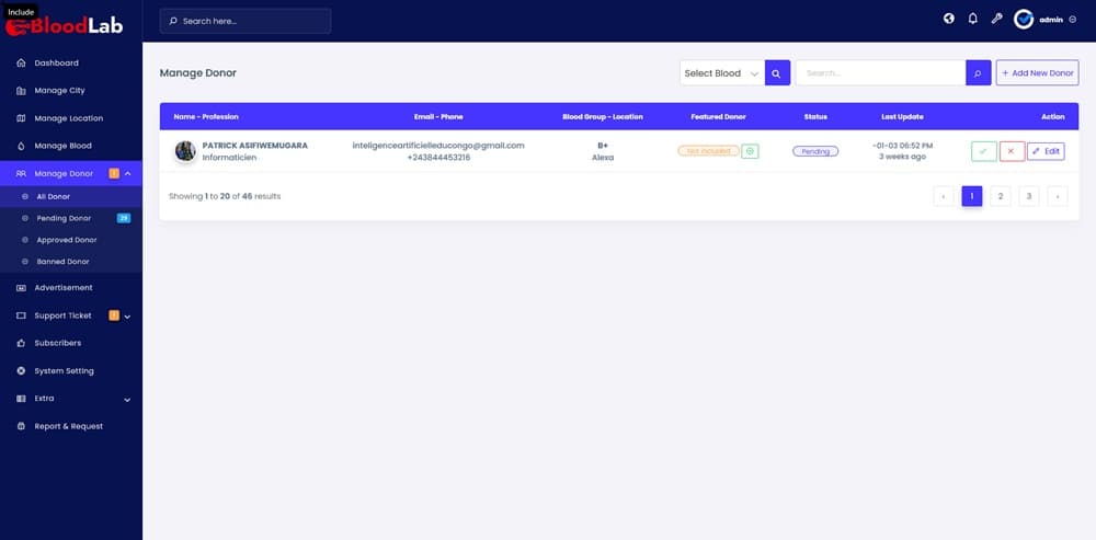 BloodLab-Blood Donation Platform یک اسکریپت پزشکی که بسیار پیشرفته و مدرن است. BloodLab یک پلتفرم مبتنی بر وب برای تسهیل فرآیند اهدا خون است. این سیستم به کاربران این اجازه را می دهد تا با جستجوی اهداکنندگان خون و مراکز درمانی ارتباط برقرار کنند.
