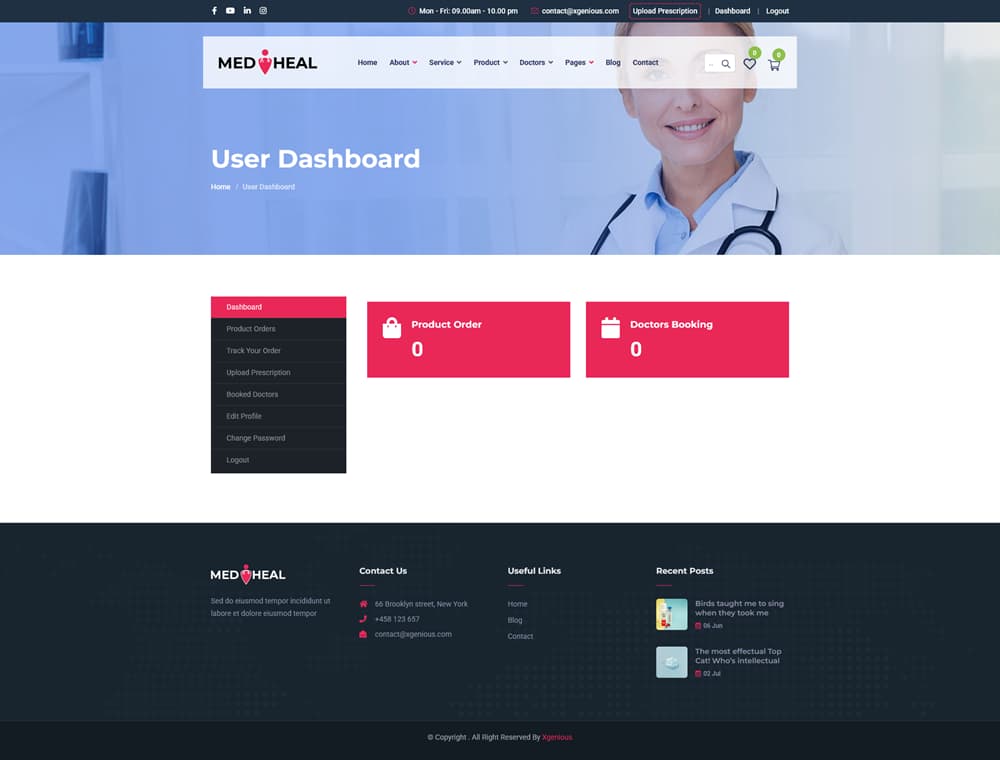 Medheal-Medical Store eCommerce-Appointment یک اسکریپت پزشکی که بسیار پیشرفته و مدرن است. Medheal یک راه حل کامل برای ایجاد فروشگاه های اینترنتی در حوزه پزشکی است. این پلتفرم شامل سیستم قرار ملاقات با پزشک می باشد و به کاربران این اجازه را می دهد تا به راحتی داروها و محصولات پزشکی را خریداری کنند.