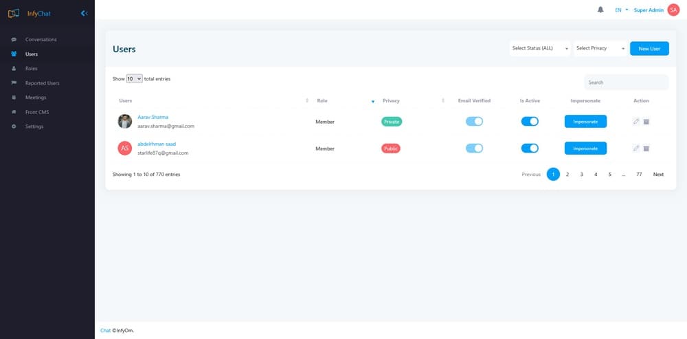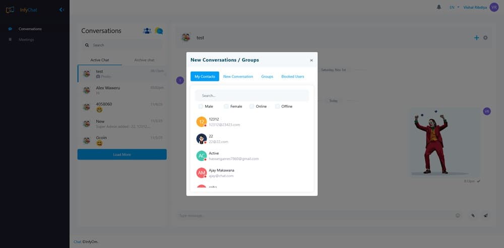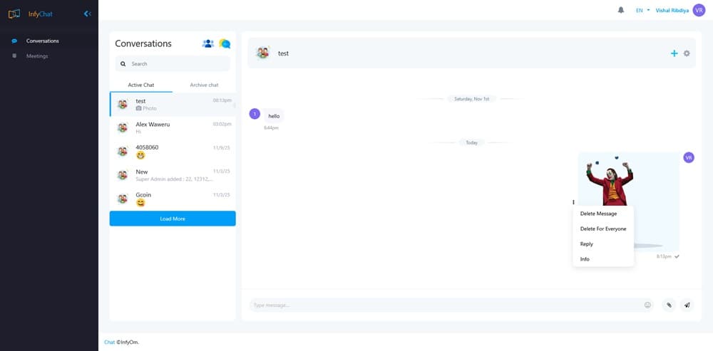 این اسکریپت شامل امکاناتی مانند: چت خصوصی، گروهی و ارسال فایل است. همچنین از طراحی واکنشگرا و رابط کاربری مدرن بهره می برد. InfyChat راه حلی موثر برای ایجاد تجربه کاربری بهتر در ارتباطات آنلاین محسوب می شود. این اسکریپت خدماتی و متفرقه دارای امکانات و ویژگی های زیادی است.