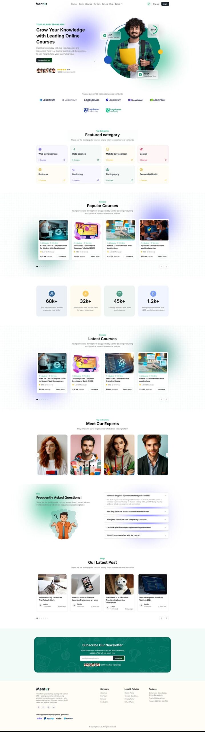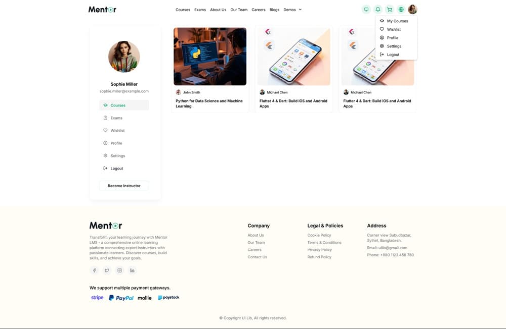 با قابلیت هایی مانند طراحی مدرن، نقش های کاربری انعطاف پذیر، ادغام پرداخت های امن و پشتیبانی از کلاس های زنده، Mentor LMS نه تنها تجربه یادگیری حرفه ای را فراهم می کند، بلکه نیازی به تخصص کدنویسی ندارد. این ویژگی ها باعث می شوند که مربیان و فروشندگان دوره بتوانند به راحتی فعالیت خود را آغاز کنند و بهره وری بالایی داشته باشند.