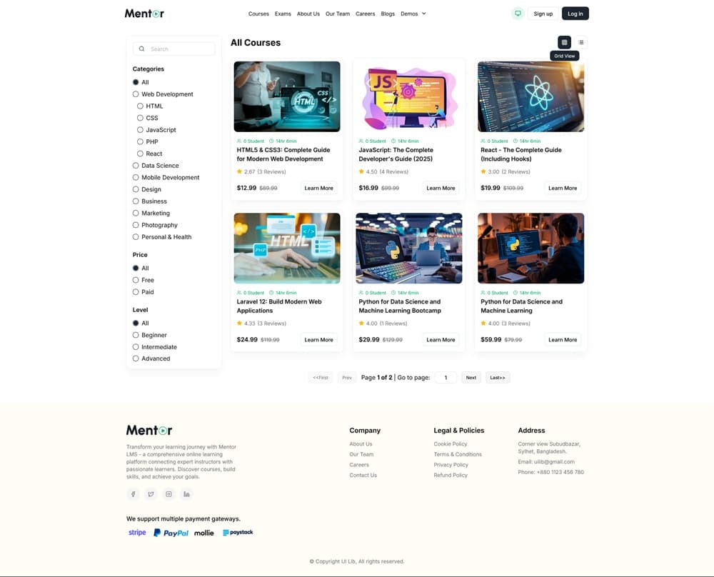 دانلود اسکریپت یادگیری Mentor LMS-Learning Management System