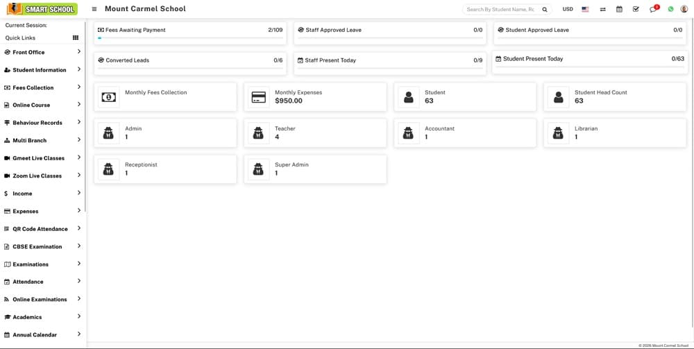 Smart School-School Management System یک اسکریپت یادگیری که بسیار پیشرفته و حرفه ای است. Smart School یک سیستم مدیریت مدرسه جامع است که امکانات متنوعی را برای مدیریت امور آموزشی و اداری مدارس فراهم می کند. این سیستم شامل ماژول های مختلفی مانند: مدیریت دانش آموزان، معلمان، کلاس‌ها و نمرات است.