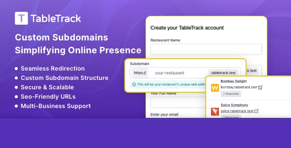 Subdomain Module for Tabletrack یک افزونه متفرقه که بسیار پیشرفته و حرفه ای است. Subdomain ابزاری است که قابلیت پشتیبانی از چندین شرکت و دامنه های سفارشی را به نمونه SaaS شما اضافه می کند. با این افزونه، هر شرکت می تواند از URL منحصر به فرد خود بهره برداری کند. این افزونه ها را به صورت رایگان امتحان کنید.