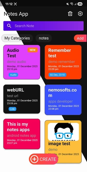 Android Notes App By nemosofts یک اپلیکیشن ابزار اندروید که بسیار پیشرفته و مدرن است. Android Notes یک راه حل کاربردی برای یادداشت برداری و سازمان دهی اطلاعات است. این برنامه به کاربران امکان می دهد تا یادداشت های خود را به راحتی ایجاد، ویرایش و دسته بندی کنند. این سورس اندروید را به صورت رایگان امتحان کنید.