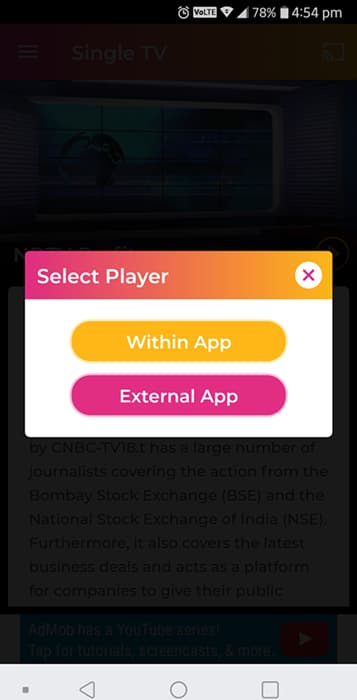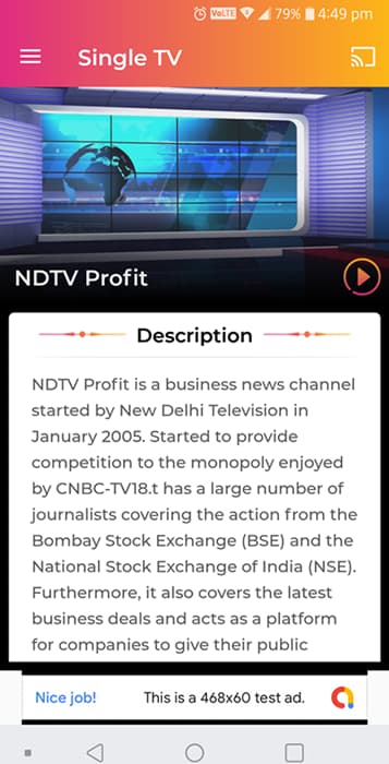 Android Single TV App (Live Streaming, Chromecast) with Admob