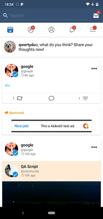 My Social Network-App and Website یک اپلیکیشن شبکه اجتماعی اندروید که بسیار پیشرفته و مدرن است. My Social Network یک بسته کامل برای راه اندازی شبکه اجتماعی است که شامل اپلیکیشن موبایل و وبسایت می شود. این پلتفرم امکان تعامل و اشتراک گذاری محتوا را با ویژگی هایی مانند: پروفایل کاربری، پیام رسان و اشتراک گذاری تصویر و ویدئو و… فراهم می کند. این سورس اندروید را به صورت رایگان امتحان کنید.