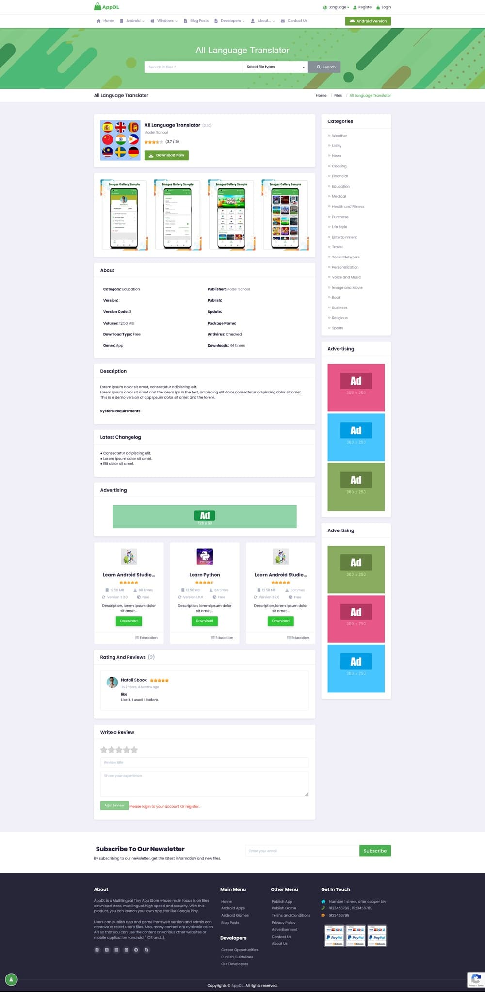 AppDL-Multilingual Tiny App Store یک اپلیکیشن فروشگاهی اندروید که بسیار پیشرفته و مدرن است. AppDL یک اسکریپت پیشرفته برای راه اندازی فروشگاه اپلیکیشن چند زبانه است که به کاربران این امکان را می دهد تا فایل های مختلف را با سرعت و امنیت بالا دانلود کنند. این سورس اندروید را به صورت رایگان امتحان کنید.