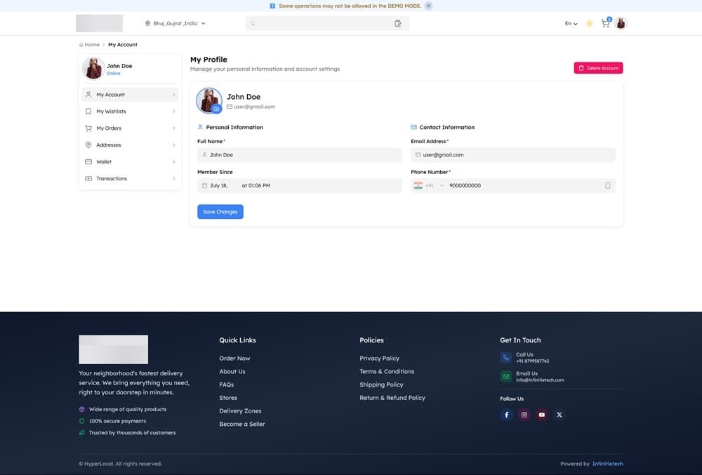 Hyperlocal-Multivendor eCommerce یک اپلیکیشن فروشگاهی فلاتر که بسیار پیشرفته و مدرن است. Hyperlocal یک راه حل جامع برای کسب و کار های محلی است که به کاربران این امکان را می دهد محصولات را از فروشندگان مختلف خریداری کنند. این سورس فلاتر را به صورت رایگان امتحان کنید.