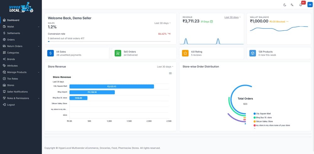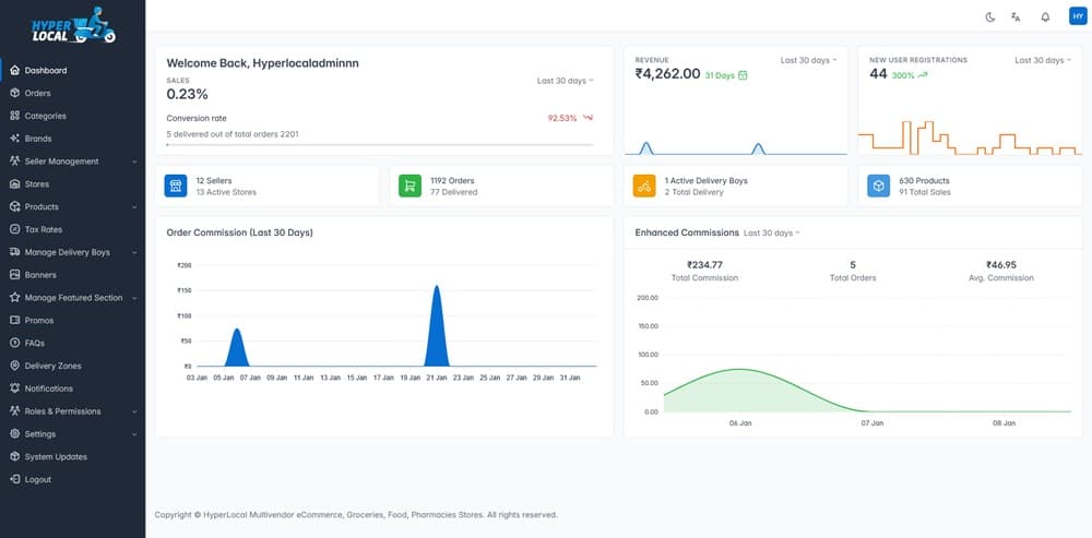 Hyperlocal – Multivendor eCommerce, Grocery, Food, Pharmacy Flutter Delivery app – Admin & Website