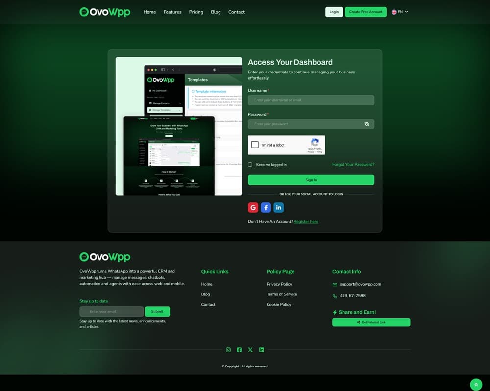 این پلتفرم چندمنظوره، راه حلی هوشمند و مقیاس پذیر برای مدیریت مخاطبان، اجرای کمپین ها و افزایش تعامل مشتری ارائه می دهد. OvoWpp با طراحی کاربرپسند، راه اندازی آسان پلتفرم SaaS واتساپ و تجربه ای بی نظیر از بازاریابی را فراهم می کند. این ابزار مناسب برای استارتاپ ها و آژانس های دیجیتال است که به دنبال گسترش کسب و کار خود هستند.