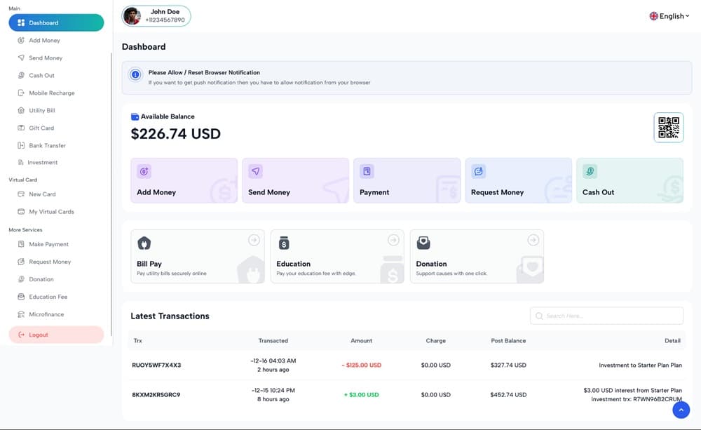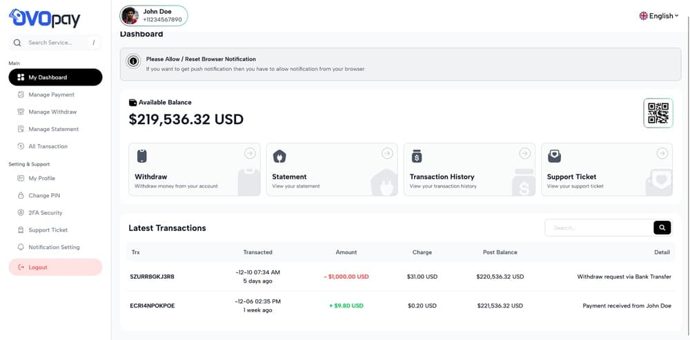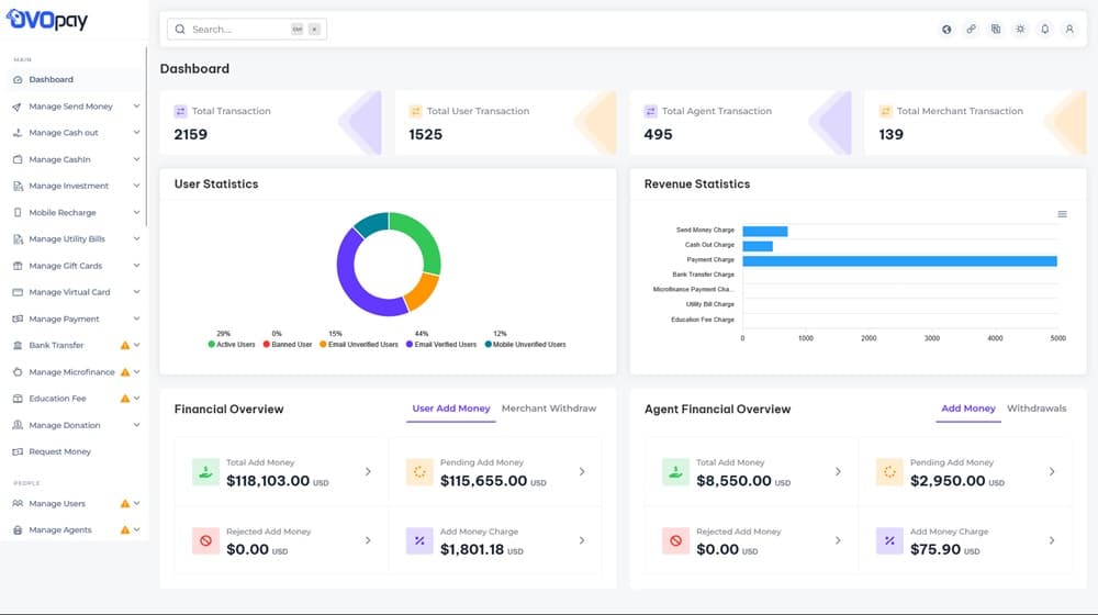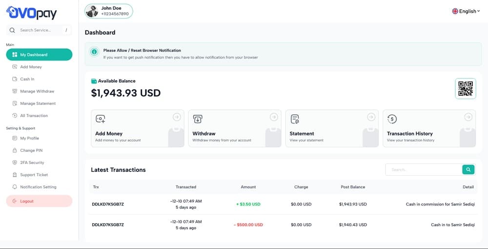OvoPay – Complete Cross Platform MFS Solution | User, Agent & Merchant Apps with Web | Admin Panel