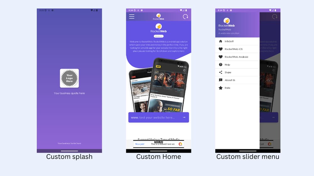 RocketWeb-Configurable Android WebView یک اپلیکیشن وب ویو اندروید که بسیار پیشرفته و مدرن است. RocketWeb ابزاری است که به توسعه دهندگان این امکان را می دهد تا وبسایت های خود را به اپلیکیشن های اندروید تبدیل کنند. این سورس اندروید را به صورت رایگان امتحان کنید.