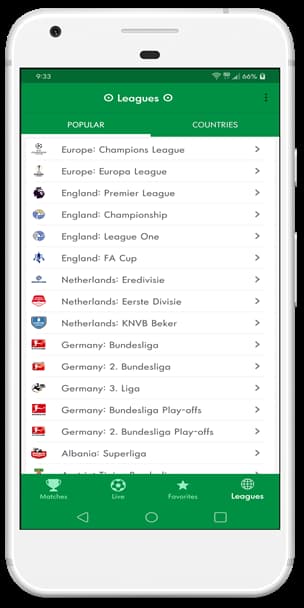 • امکان مشاهده تمام لیگ ها براساس محبوب ترین ها و کشور ها