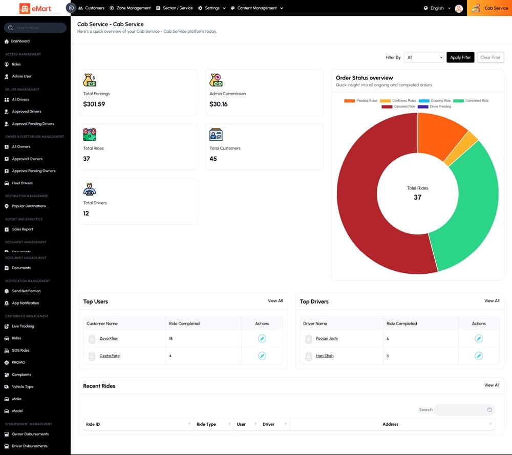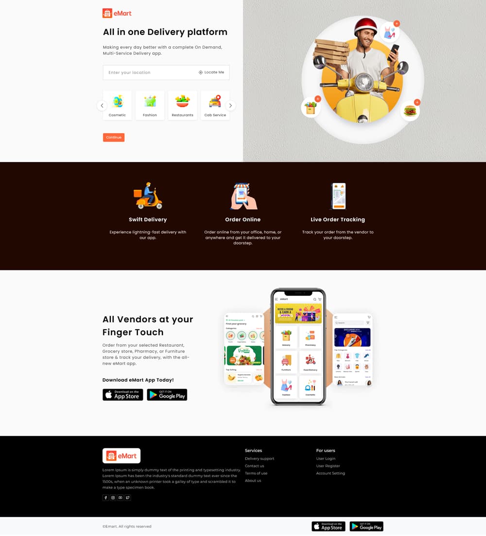 eMart | Multivendor Food, On-demand, eCommerce, Parcel, Taxi Booking, Car Rent App with Admin & Web