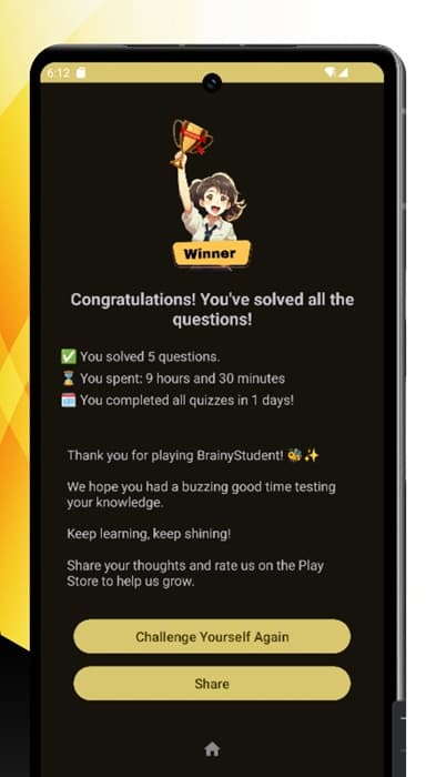 کاربران می توانند در موضوعات مختلفی از جمله گرامر، دایره واژگان و درک مطلب شرکت کنند و به چالش های روزانه بپردازند. همچنین، امکان پیگیری عملکرد کاربران در لحظه، این تجربه یادگیری را کامل تر می کند. BrainyStudent با طراحی کاربرپسند و جذاب خود، انگیزه یادگیری را افزایش می دهد و به کاربران کمک می کند تا به صورت دائم مهارت های خود را تقویت کنند.