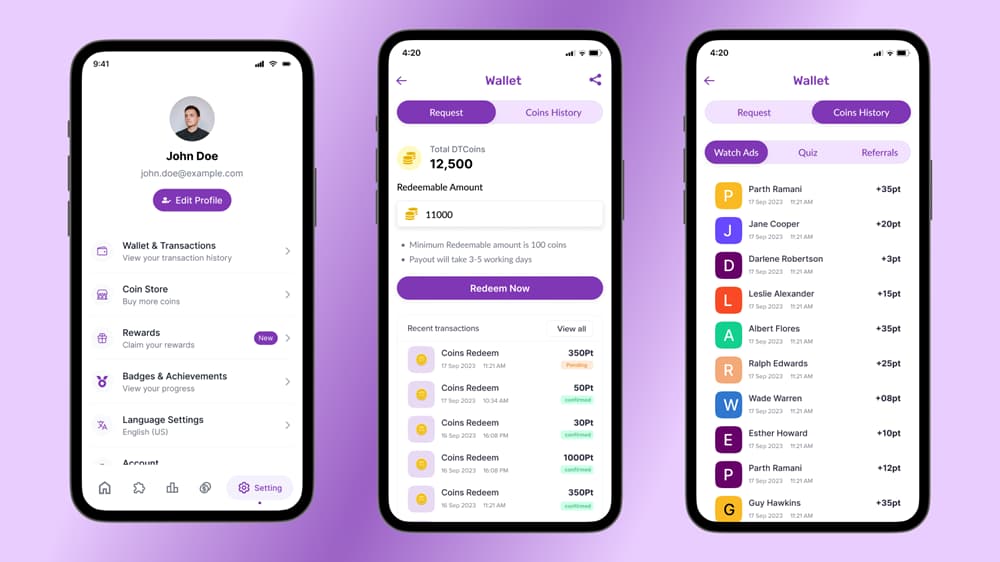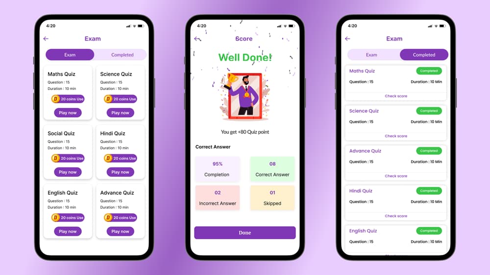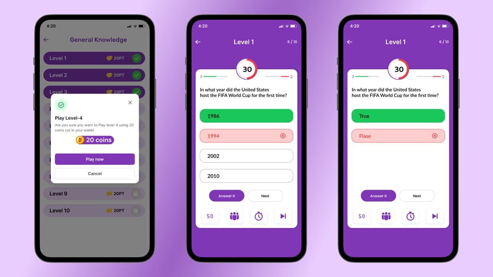 قابلیت های یادگیری فلاتر DTQuiz-Flutter Online Quiz-Earn App