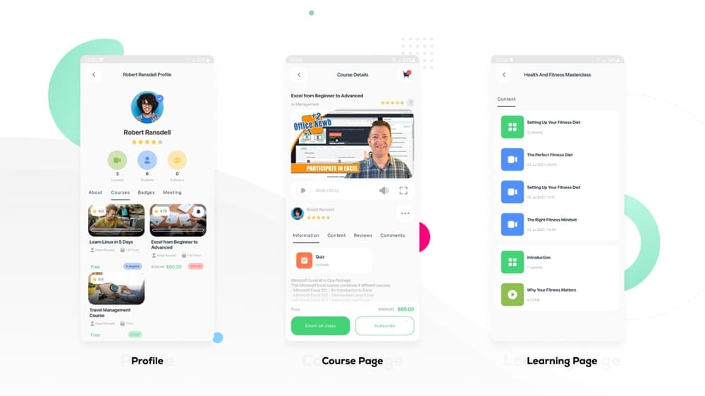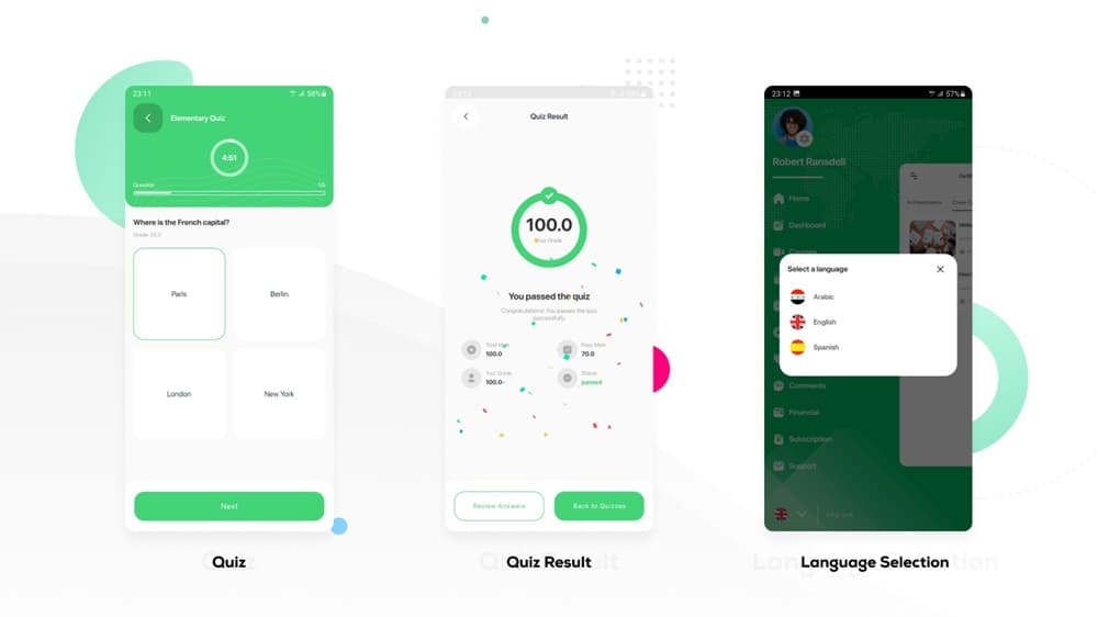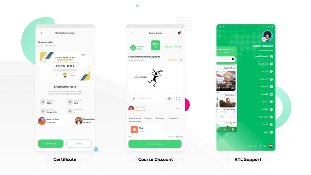 قابلیت های یادگیری فلاتر Rocket LMS Flutter Mobile App-Learning