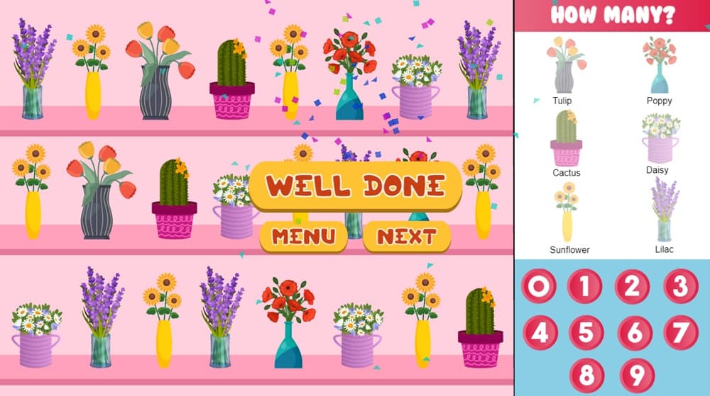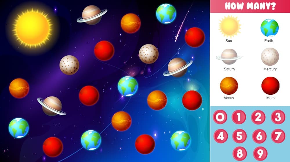 Counting Game for Kids یک بازی اچ تی ام ال که بسیار سرگرم کننده و چالش برانگیز است. Counting Game یک بازی‌ آموزشی منحصر به فرد است که به کودکان کمک می کند تا شمارش اعداد از یک تا نه را یاد بگیرند. این بازی شامل چندین سطح با تم های مختلف مانند :حیوانات، سیارات، میوه ها و گل ها است.