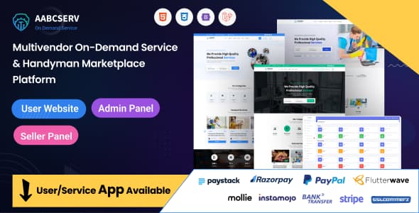 Aabcserv-Multivendor On-Demand Service یک اسکریپت خدمات که بسیار پیشرفته و مدرن است. AABCServ یک اسکریپت با قابلیت چند فروشندگی برای خدمات آنلاین است که امکان ارائه خدمات مختلف مانند: خدمات خانگی و تعمیرات را فراهم می کند. این پلتفرم به کاربران این امکان را می دهد که به سادگی فروشندگان خدمات را پیدا کرده و با آن ها ارتباط برقرار کنند.